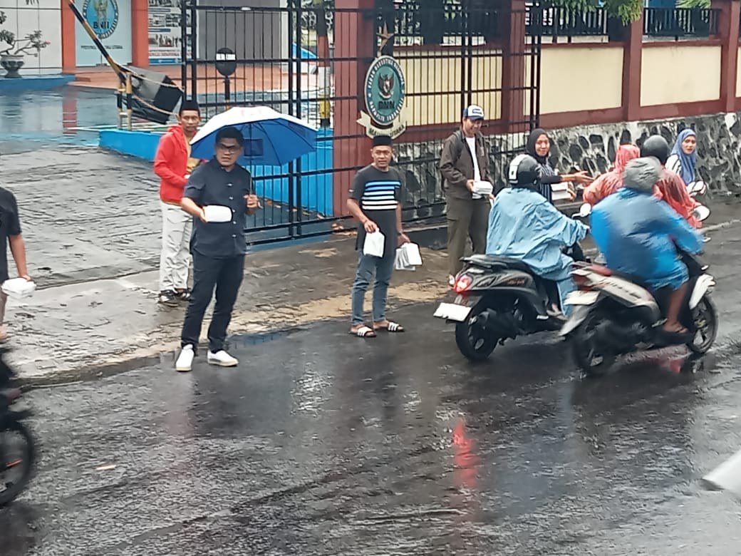 Pembagian takjil di bulan Suci Ramadhan ini dibagikan untuk kepada masyarakat yang sedang berkendara roda dua dan empat maupun pejalan kaki yang melin tasi jalan disamping gedung DPRD.