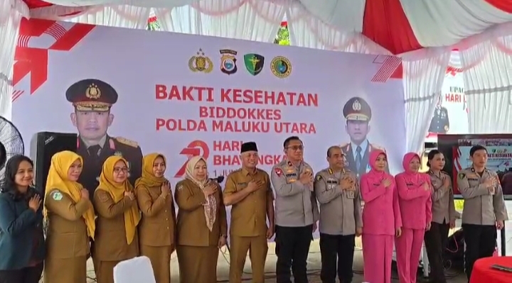 TERNATE – Dalam rangkah Hari Ulang Tahun (HUT) Bhayangkara ke 79 tahun 2025, Polda Maluku Utara melalui Bidang Dokter Kesehatan melakukan serangkai kegiatan salah satunya dengan mengadakan bakti kesehatan dengan melakukan pemeriksaan kesehatan gratis di laksanakan di lapangan Polres Kota Ternate, Senin, (16/6/2025).