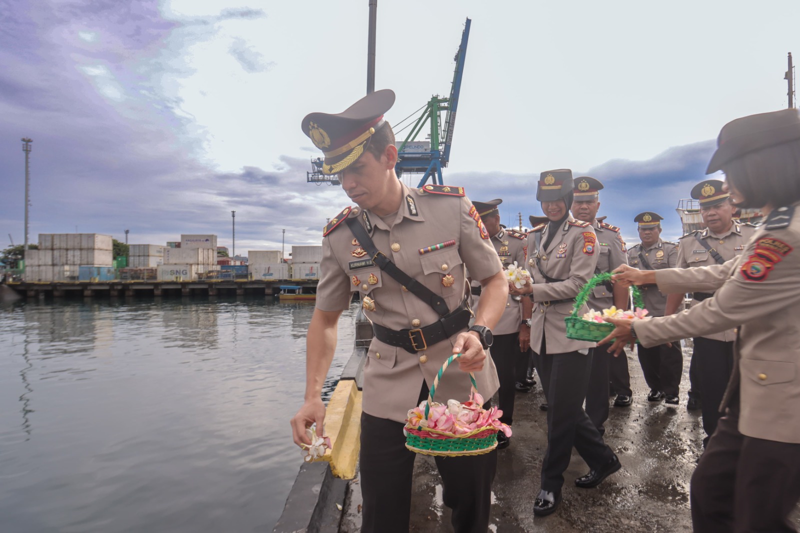TERNATE – Dalam rangka memperingati Hari Bhayangkara ke-79, Polres Ternate menggelar upacara tabur bunga di laut yang bertempat Pelabuhan Ahmad Yani, Kelurahan Kota Baru, Kecamatan Ternate Tengah, Senin (23/6/25) pagi.