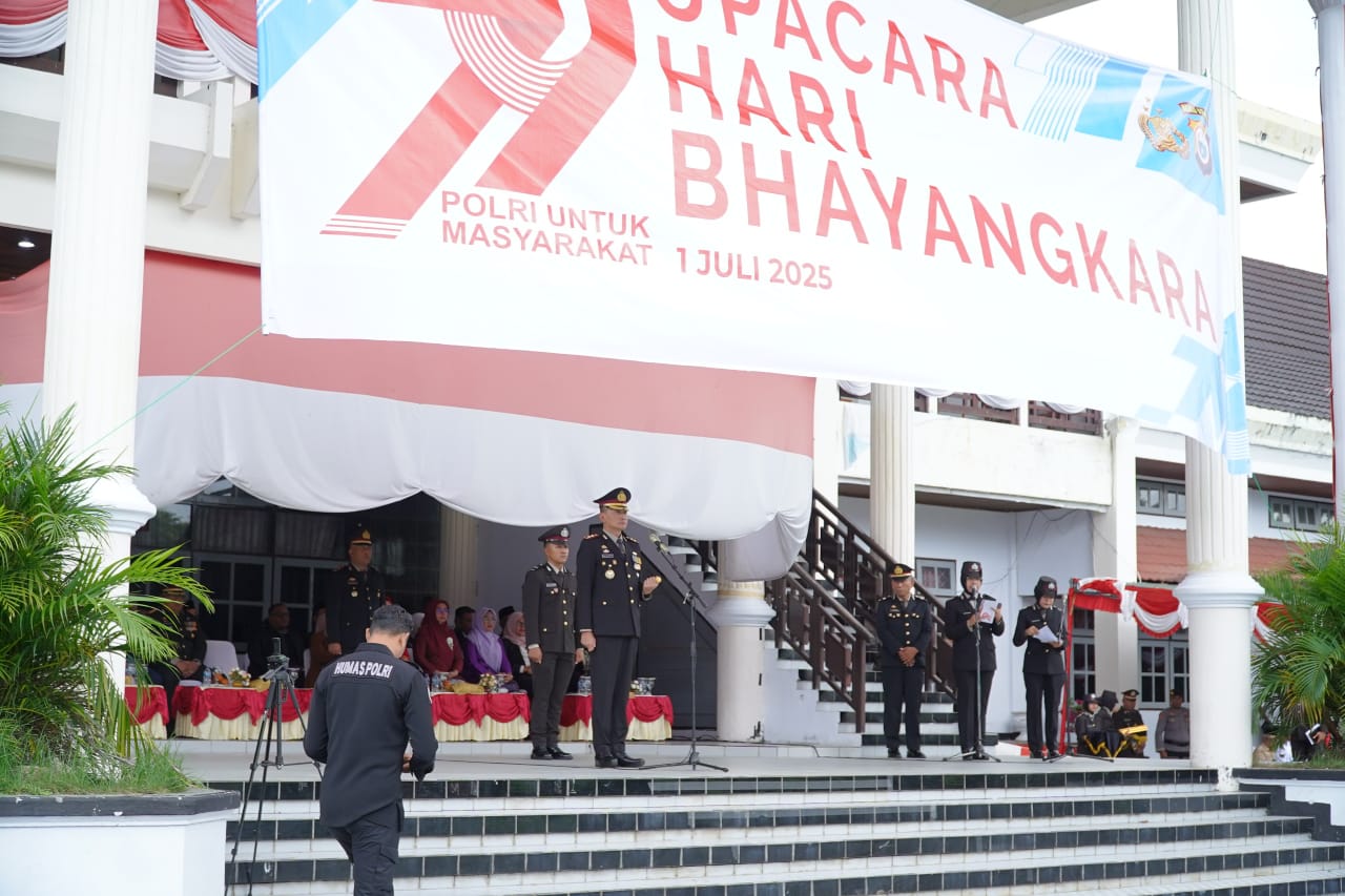 Meski Diguyur Hujan, Upacara Hari Bhayangkara k-79 Berjalan Lancar dan Sukses
