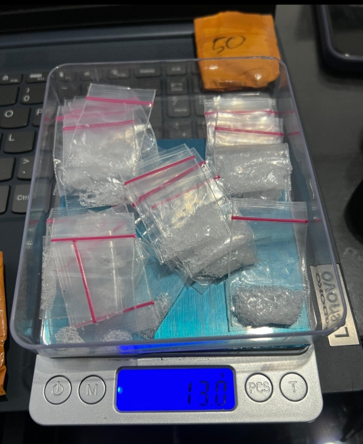 Dari tangan terduga pelaku, petugas mengamankan 27 saset plastik bening berisi kristal putih yang diduga narkotika jenis sabu dengan berat bruto 13 gram.