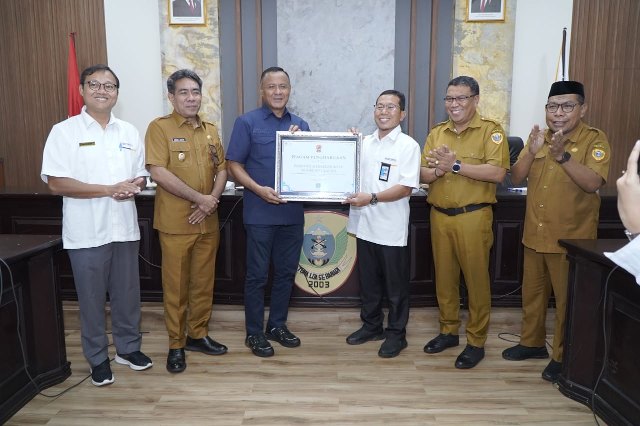 Piagam penghargaan tersebut diserahkan dalam kunjungan silaturahmi sekaligus kunjungan kerja Kepala Kantor Wilayah DJPb Provinsi Maluku Utara yang diterima langsung oleh Wali Kota Tidore Kepulauan Muhammad Sinen didampingi Wakil Wali Kota Tidore Ahmad Laiman, Sekretaris Daerah Ismail Dukomalamo, Para Asisten dan Staf Ahli Wali Kota serta Para Pimpinan OPD di Lingkup Pemerintah Kota Tidore Kepulauan.