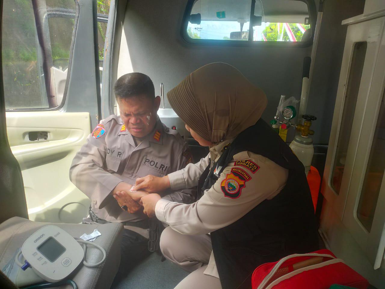 TERNATE – Pelaksanaan unjuk rasa di depan Kantor DPRD Kota Ternate, Kelurahan Kalumata, Senin (1/9) kemarin sempat terjadi ketegangan yang mengakibatkan sejumlah orang mengalami luka-luka dan membutuhkan penanganan medis. Menyikapi hal tersebut, Tim Mobile Urusan Kesehatan (Urkes) Polres Ternate langsung diterjunkan untuk memberikan pertolongan cepat di lokasi.