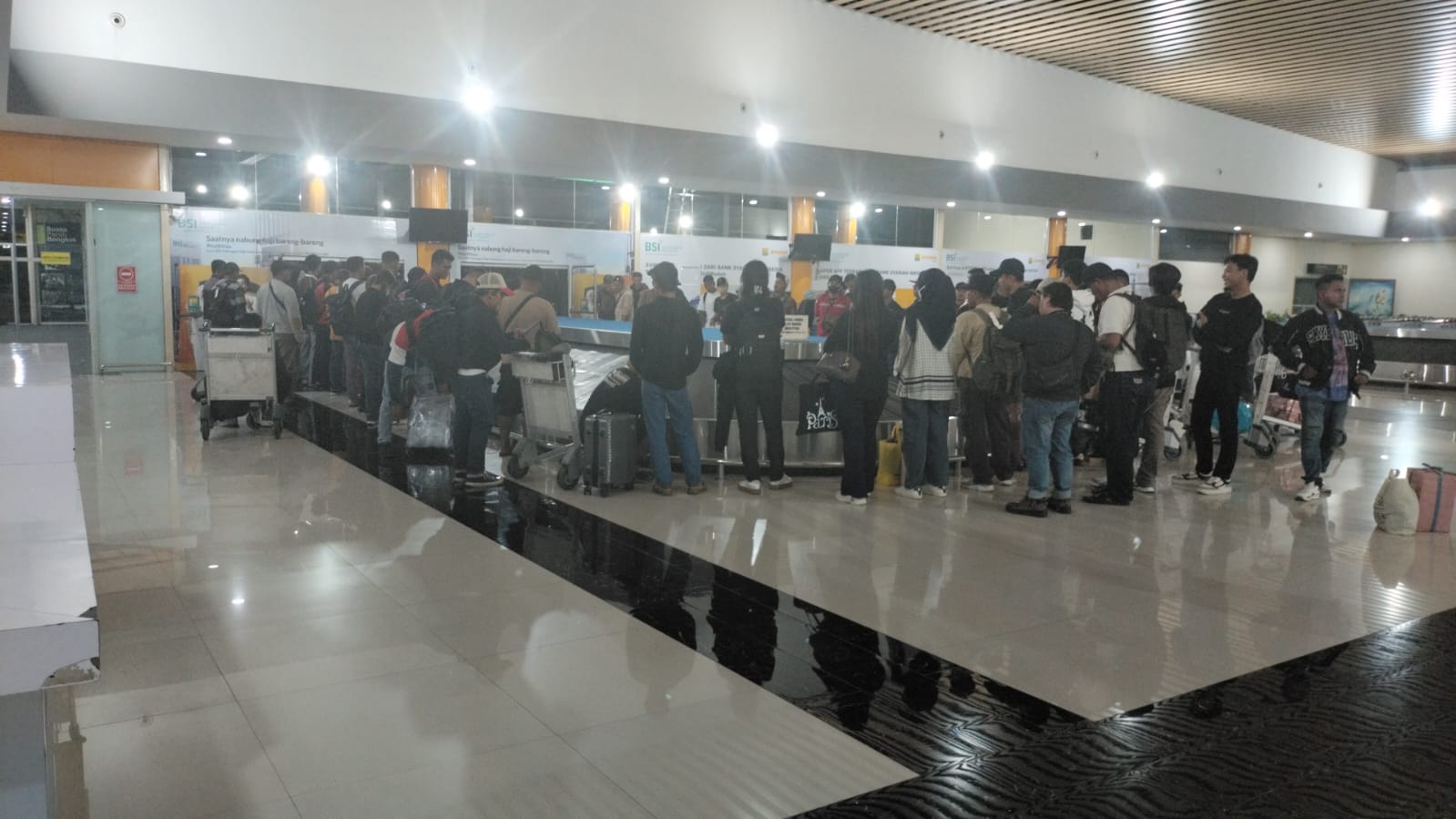 Setelah pesawat mendarat, para penumpang langsung diarahkan menuju ruang kedatangan untuk proses pengambilan bagasi. Beberapa petugas dari pihak maskapai juga terlihat membantu penumpang yang membutuhkan informasi lebih lanjut.