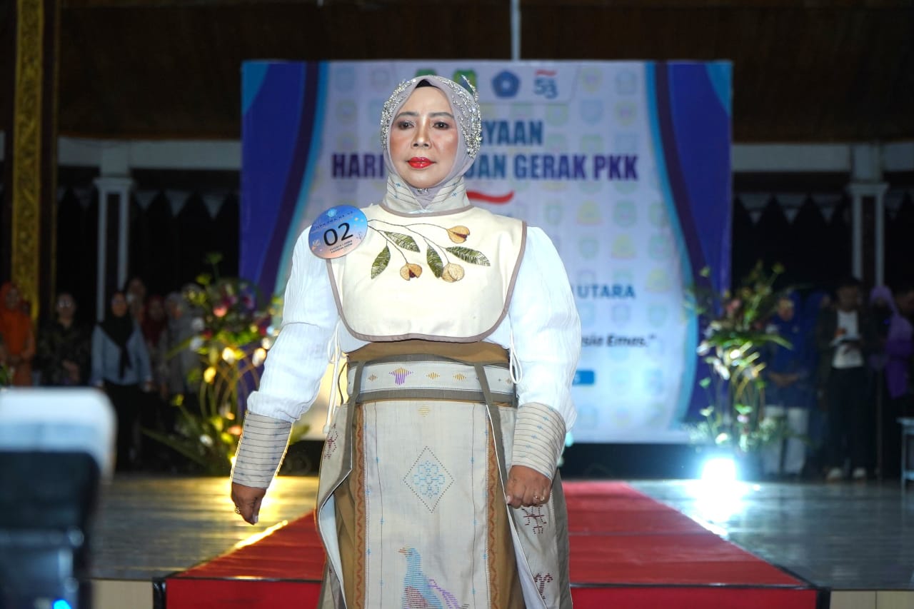 Ketua I TP PKK Tampil Memukau dalam Balutan Tenun Puta Dino di Panggung HKG