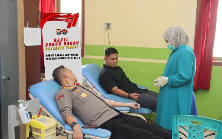 Kapolresta Tidore AKBP Heru Budiharto, S.I.K., M.I.K. turut berpartisipasi mendonorkan darahnya bersama sejumlah personel Polresta Tidore dan jajaran.