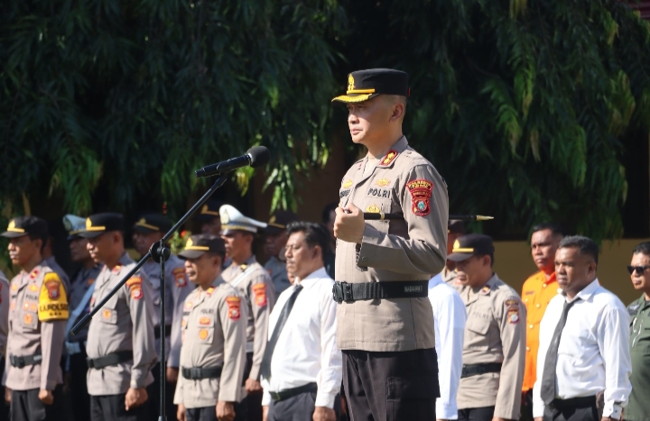TIDORE – Polresta Tidore melaksanakan Apel Kesiapan Tanggap Darurat Bencana Hidrometeorologi Tahun 2025, bertempat di Lapangan Apel Mapolresta Tidore, Kelurahan Goto, Kecamatan Tidore, Kota Tidore Kepulauan, pada Rabu (5/11/2025). Kegiatan apel tersebut dipimpin langsung oleh Kapolresta Tidore AKBP Heru Budiharto, S.I.K., M.I.K.