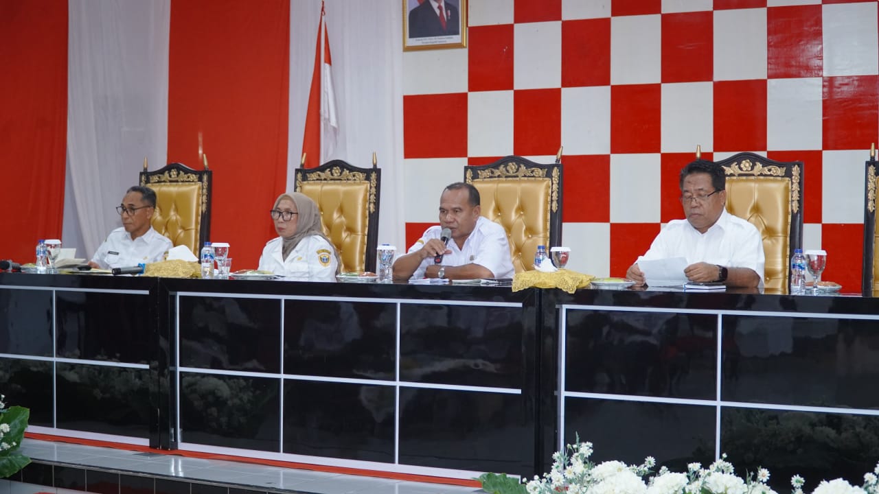 Rapat ini dipimpin oleh Staf Ahli Wali Kota Bidang Ekonomi, Pembangunan dan Keuangan Abdul Hakim Adjam didampingi Kepala Inspektur Arif Radjabessy, Kepala Dinas Perindagkop Selvia M. Nur, Plt.Kepala Dinas PMD dan Kepala Bagian Tata Pemerintahan, rapat dihadiri oleh OPD terkait, para Camat, Lurah dan Kepala Desa se Kota Tidore Kepulauan.