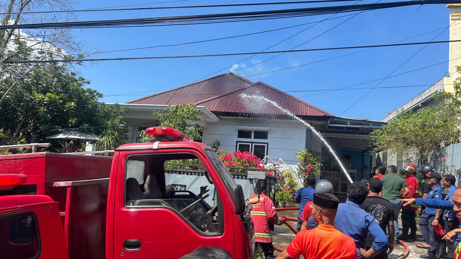 Saksi kemudian meminta pertolongan warga sekitar. Salah satu warga, Ilham Saleh Mangoda (50), yang melintas di lokasi langsung berhenti dan bersama masyarakat berupaya memadamkan api dengan peralatan seadanya. Upaya penyelamatan korban terkendala karena asap tebal serta kondisi kamar yang terkunci dan jendela dilengkapi terali besi, sehingga korban tidak dapat dijangkau.