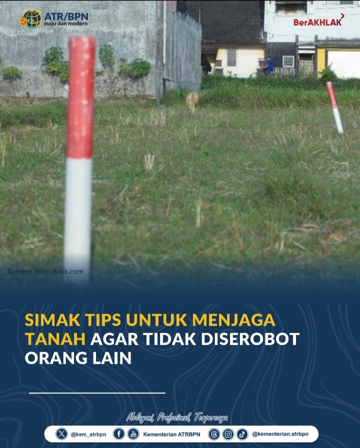 “Biar tanah tidak diserobot orang, yang paling penting adalah memastikan batas tanah jelas dan memiliki sertipikat sebagai bukti hukum yang kuat,” ujar Kepala Biro Hubungan Masyarakat (Humas) dan Protokol Kementerian Agraria dan Tata Ruang/Badan Pertanahan Nasional (ATR/BPN), Shamy Ardian, dalam keterangannya pada Rabu (29/04/2026).